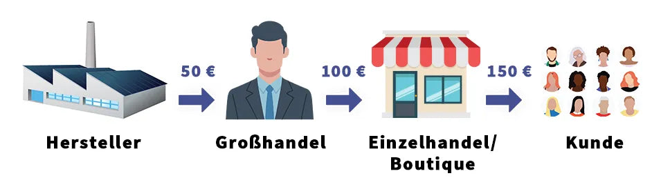 Händler und Boutiquen brauchen hohe Aufschläge – für Mitarbeiter, Lager, große Ladengeschäfte und - Gewinn.