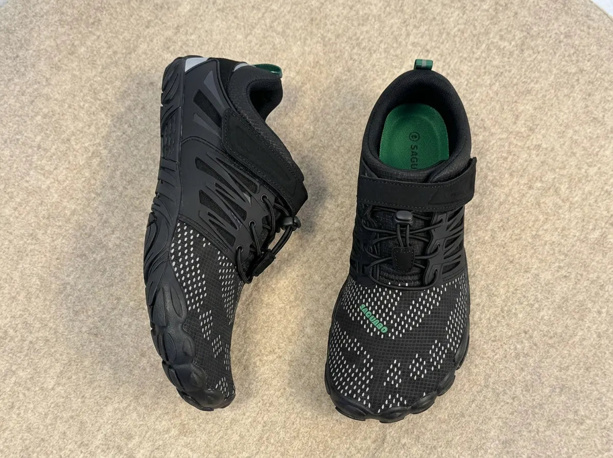 Das merkt man sofort. Extra-breite Zehenbox, flexible TPU-Sohle, echtes Barfußgefühl.