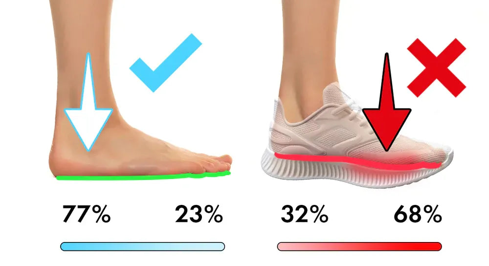 Deine Ferse darf nicht unnatürlich “aufgebockt” sein, wie bei herkömmlichen Schuhen.
